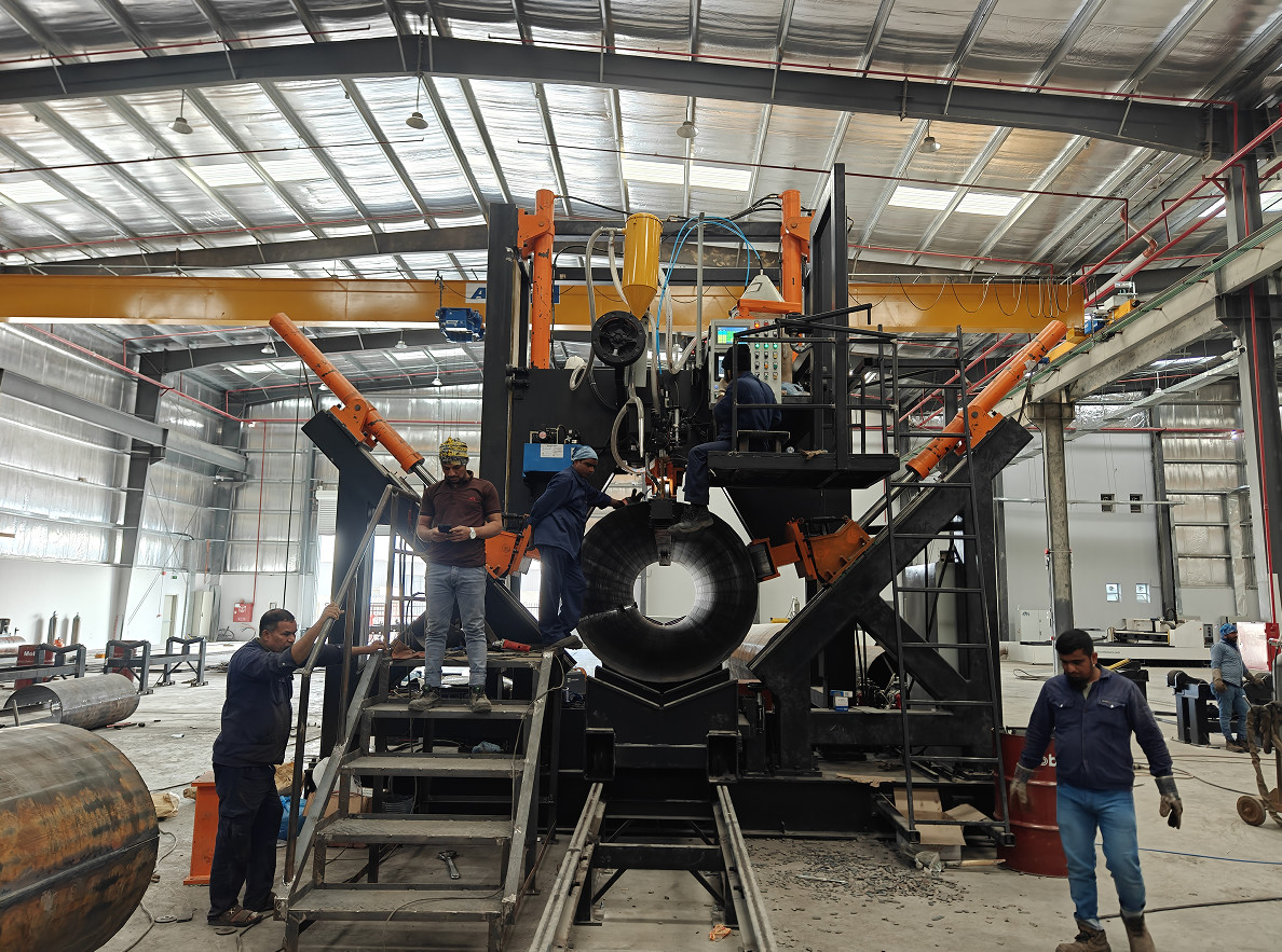 HIGHMAST POLE SHUT-WELDING MACHINE, มันเหมาะสําหรับกล่องหนึ่งหรือกล่องสองชนิดโพลิกอนและวงกลมโพลิกอนโครงสร้างประเภท gantry เป็นที่คงและมีระบบปั่น, รถกระบะความยาวสตางค์เต็มด้วยมอเตอร์ SERVO สําหรับการเคลื่อนที่ที่ปรับความเร็ว, กระบอกไฮดรอลิกผลักล้อ clamping ปิดสตางค์และทําการปั่นในเวลาเดียวกัน