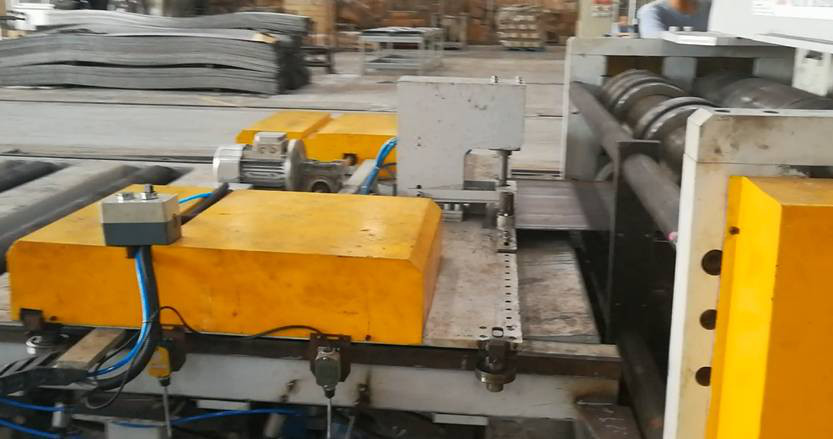 (หลังจากที่แผ่นถูกตัดเป็นความยาว ระบบสามารถย้ายแผ่นไปข้างของเครื่องจักร)
